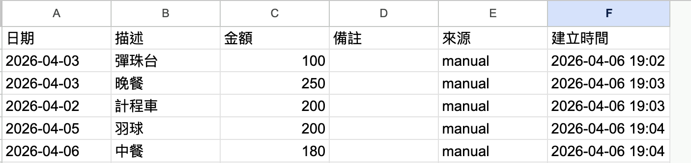 - 我沒有讓AI自訂類別,這是因為我很討厭分類(就算用AI也一樣),我想要維持最乾淨的消費紀錄就好,分析階段再彈性的去分類。