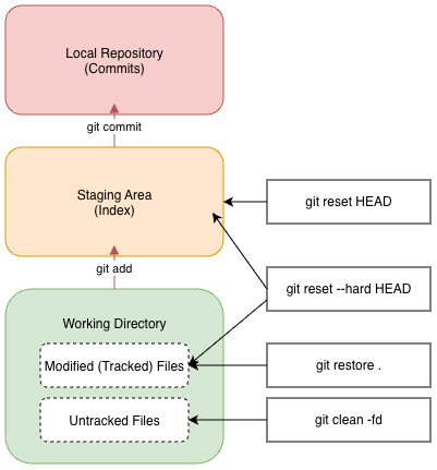 這邊介紹最容易搞混的三個指令:git reset, git restore, git clean -fd